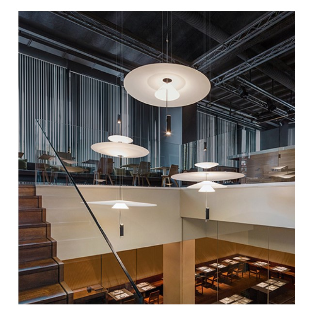 Projekt lampy Flamingo stworzony został w fabryce marki Vibia, która jest hiszpańskim producentem marki premium. Marka Vibia produkuje wiele produktów renomowanych projektantów. Autorem projektu lampy Flamingo jest Projektant Antoni Arola. Vibia posiada wyraźny system wartości, na który składają się estetyka oraz do wzornictwa.