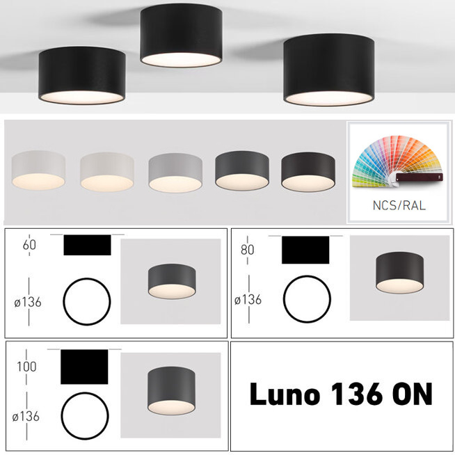Plafony Luno mają zintegrowane źródło światła. Charakteryzują się mocnym jasnym światłem i wysokim współczynnikiem oddawania barw CRI≥95.