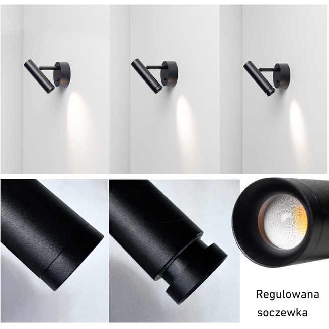 Kinkiet posiada regulowaną soczewkę, dzięki czemu dostosować można kąt świecenia. Regulacja kąta wynosi zakres od 15 - 40 stopni.