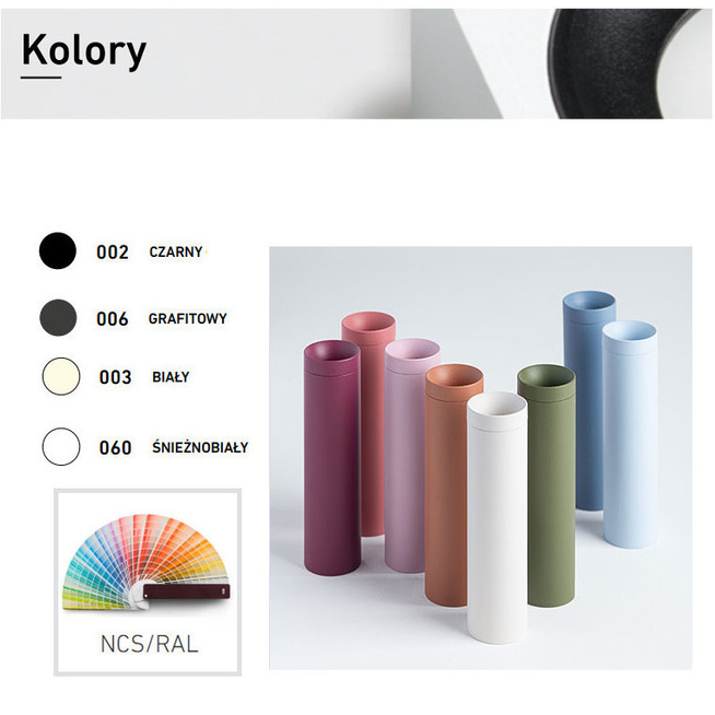 (istnieje możliwość zamówienia dowolnego koloru z palety NCS za dopłatą – prosimy o kontakt) - temperaturę barwową: