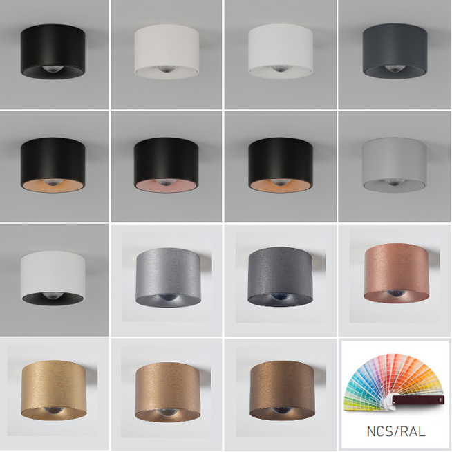 Lampy Chors dostępne są w szerokiej palecie kolorystycznej – możesz wybrać dowolny kolor z palety NCS lub RAL, a także jeden ze standardowych odcieni marki. Dostępne są również eleganckie wykończenia w stylu szlifowanego metalu: aluminium, mosiądz, brąz, miedź, palona stal czy stare złoto.